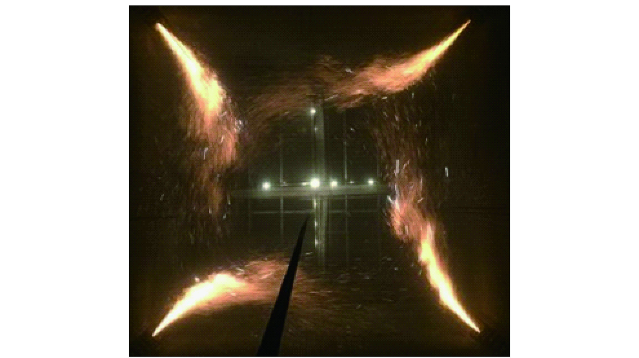 Fig.4 Cold air dynamics fireworks test (D layer burner, the primary and secondary air is in operation)